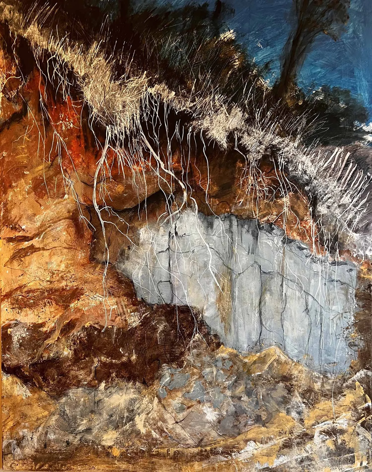 ‘My art life began as a scenic artist in the theatre. I was used to painting fast and big! The huge canvases were 15 foot high by 6ft wide. Its no wonder I find it hard to adapt my work to smaller canvasses of 30 x 40 cms!’